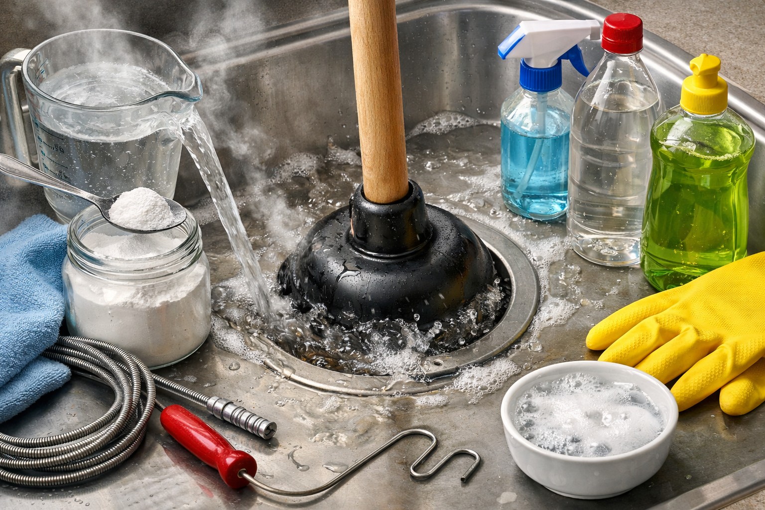A clogged drain is a household nuisance that sooner or later everyone faces. The cause of stagnant water is usually grease clogsThe plumbing can be cleaned with grease plugs, food residue, hair or soap scum buildup. You don’t have to call a handyman or buy caustic chemicals right away to get your plumbing working again. There are several proven methods that can help restore pipe clearance quickly and safely.