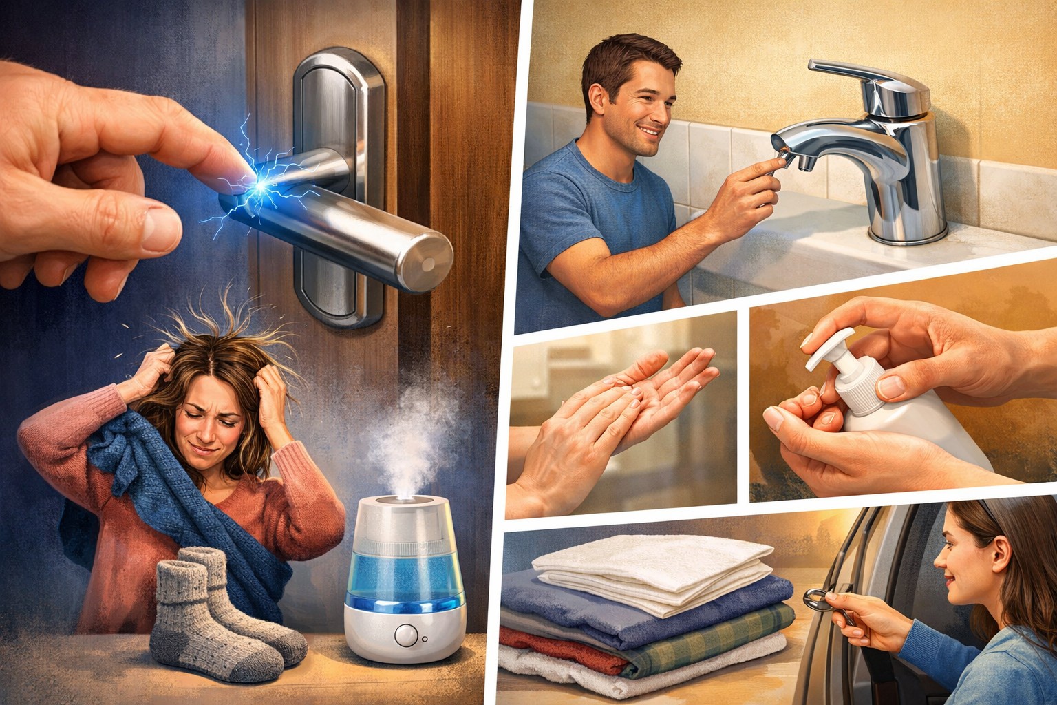 Dry air. This is the primary catalyst. Indoor humidity acts as a natural conductor, allowing charges to gradually “flow” off surfaces. In a dry environment, especially during the heating season, electricity builds up on skin and clothing much faster.
