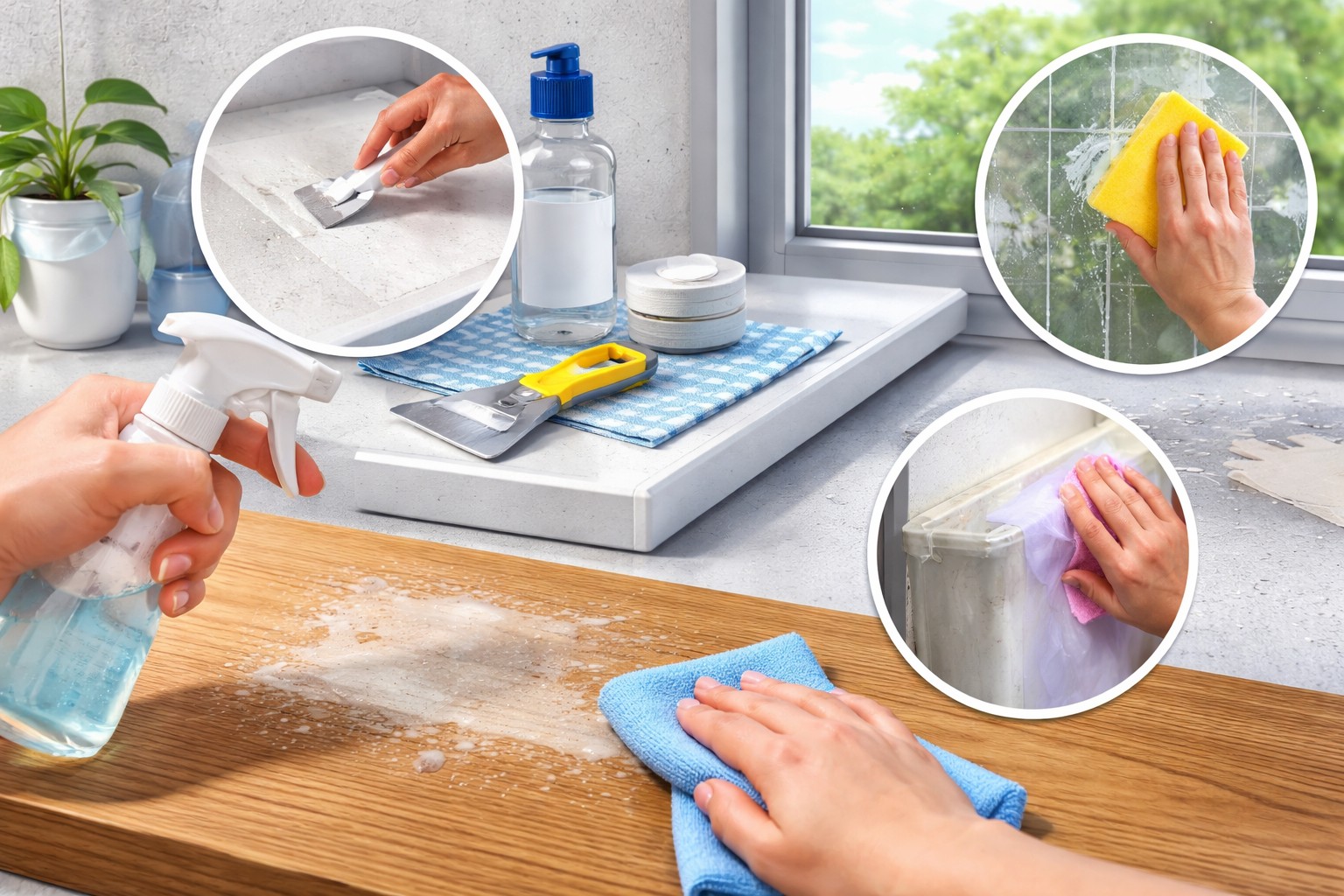 After the procedure is complete, the cleaned area should be rinsed with a soapy water solution to completely remove any residual cleaning agent and dissolved adhesive. Timely removal of contaminants allows you to preserve the original appearance of furniture, household appliances and window frames for a long time.