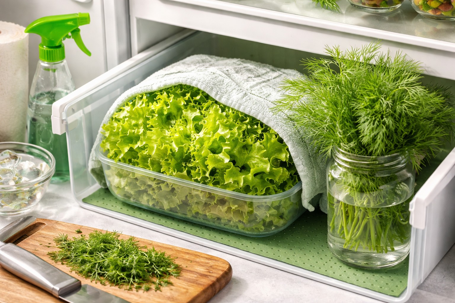 . Bouquet method. Place the stems in a glass of clean cold water and cover the top with a plastic bag. This will create a greenhouse effect with proper air circulation. . Glass jar. Seal the dried herbs tightly in a clean jar and store in the refrigerator. The absence of excess oxygen will slow down the oxidation processes. . Wet towel. Wrap the bundle in a lightly dampened cotton cloth or paper towel. This will provide the necessary hydration without the risk of root rot. . Vacuum containers. Special containers allow you to store for as long as possible texture and aroma by removing air.