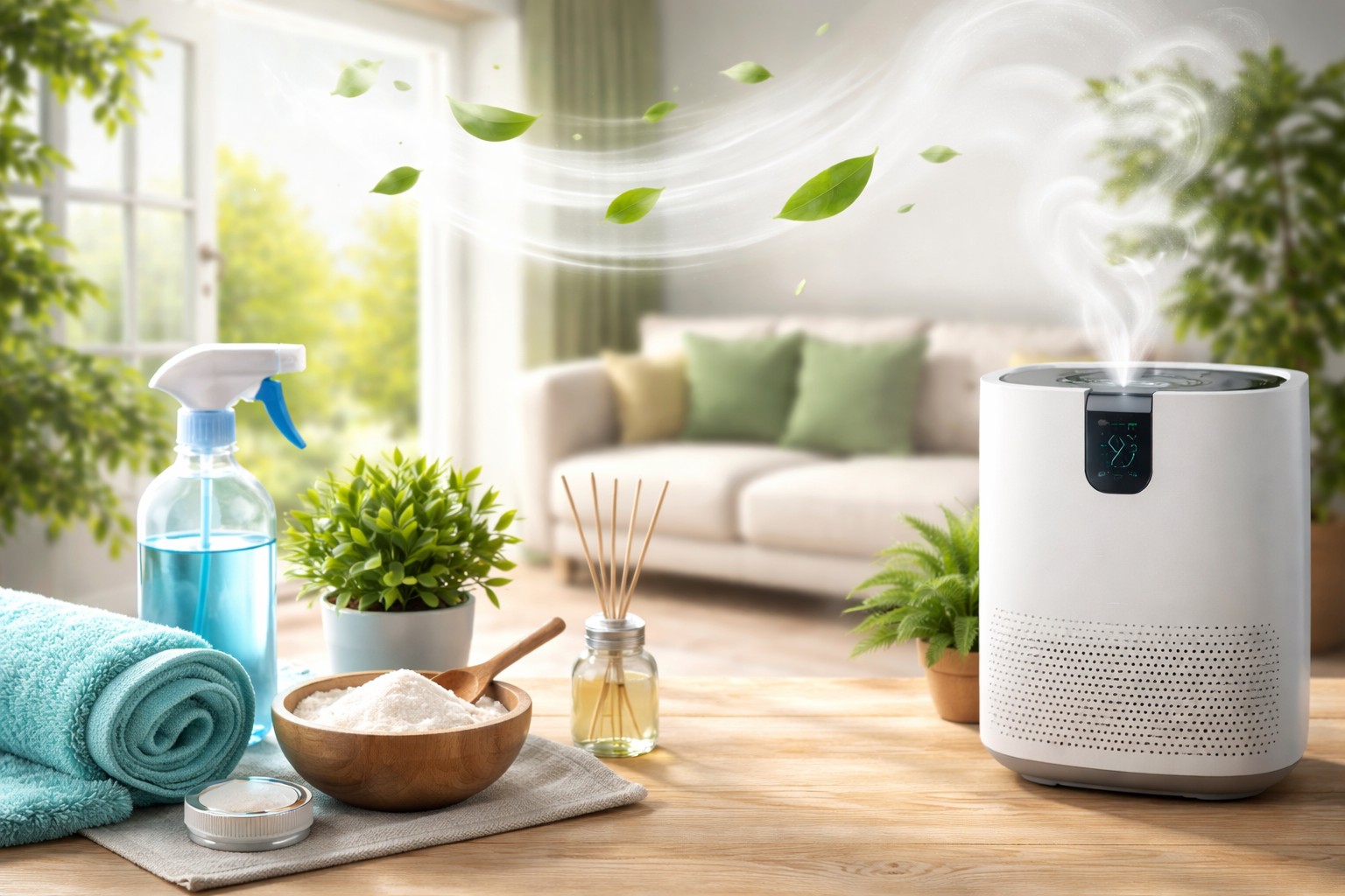 Baking soda. Perfectly neutralizes odors. Place small containers of baking soda in areas with high humidity or sprinkle it on the carpet and leave it for several hours before vacuuming.