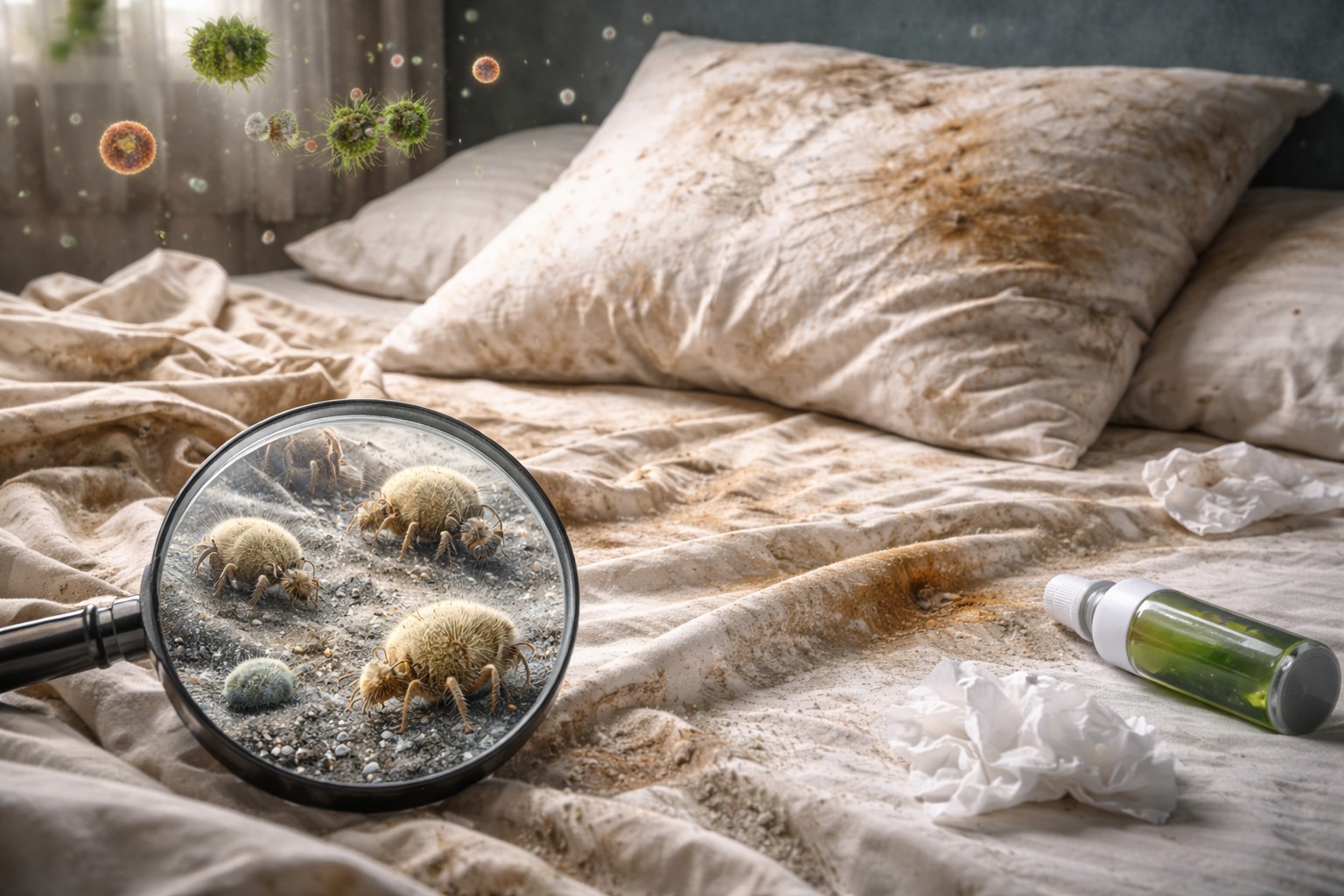 The main reason for changing linen frequently is dust mites. These microscopic organisms feed dead skin cellsthat a person loses every night. Ticks themselves do not bite, but their waste products are a powerful allergen. The accumulation of these substances in pillows and mattresses often leads to morning stuffiness, coughing, and even the development of asthma.