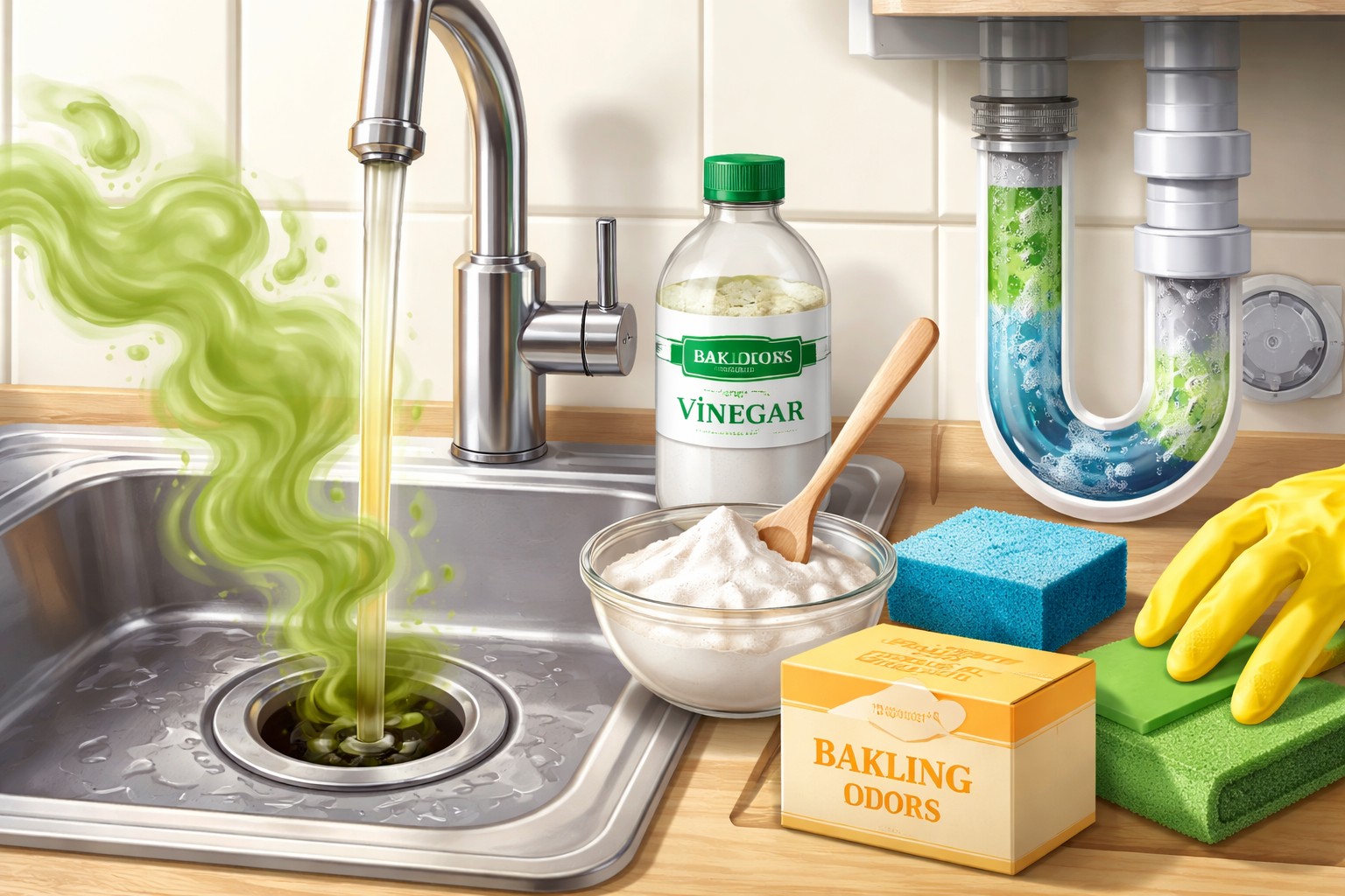 Replacing corrugations. Over time, the folded pipe under the sink stretches and accumulates dirt that can’t be washed out, so updating it often solves the problem instantly.