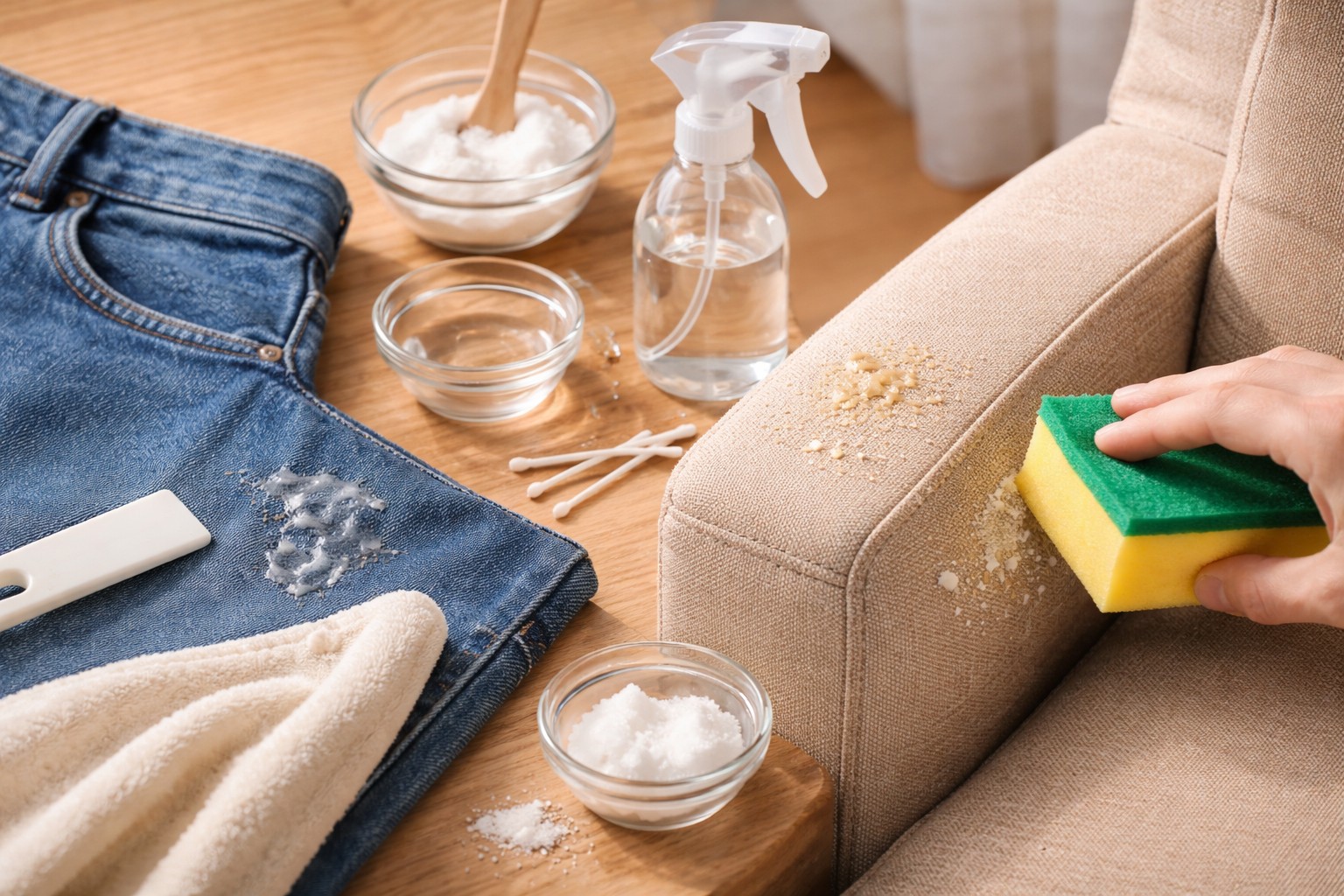 Glue stains often cause panic, especially if it is fast-drying Moment or superglue. It seems that the thing is hopelessly damaged, but the situation is often saved by available means and knowledge of chemistry. The main rule of success is reaction speedsince old stains are always more difficult to remove.