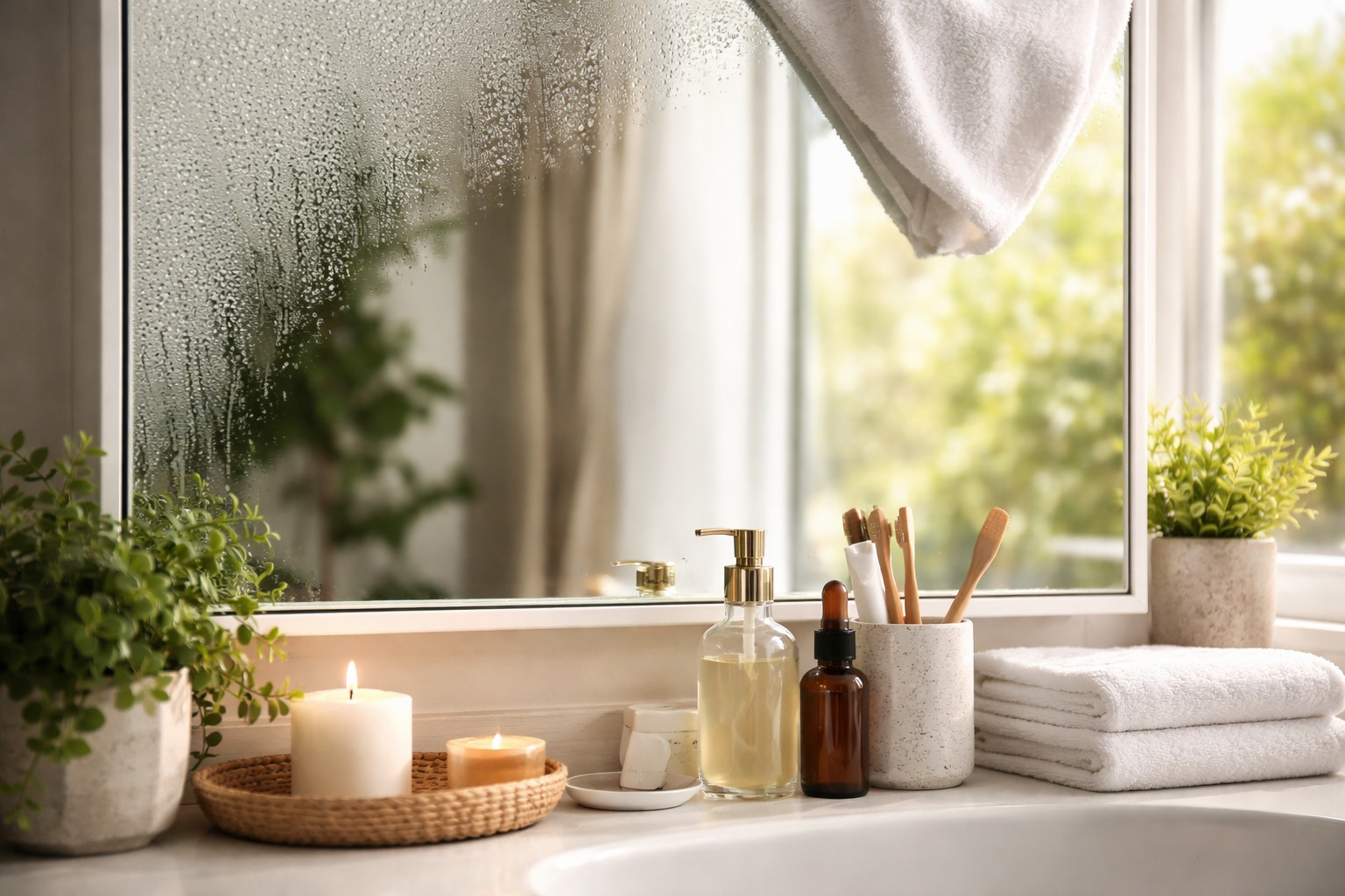 In the bathroom, the mirror is a magnet for bacteria. High humidity and heat create an ideal environment for the proliferation of microorganisms. Drops of water mixed with particles of skin, cosmetics or toothpaste settle on the glass.