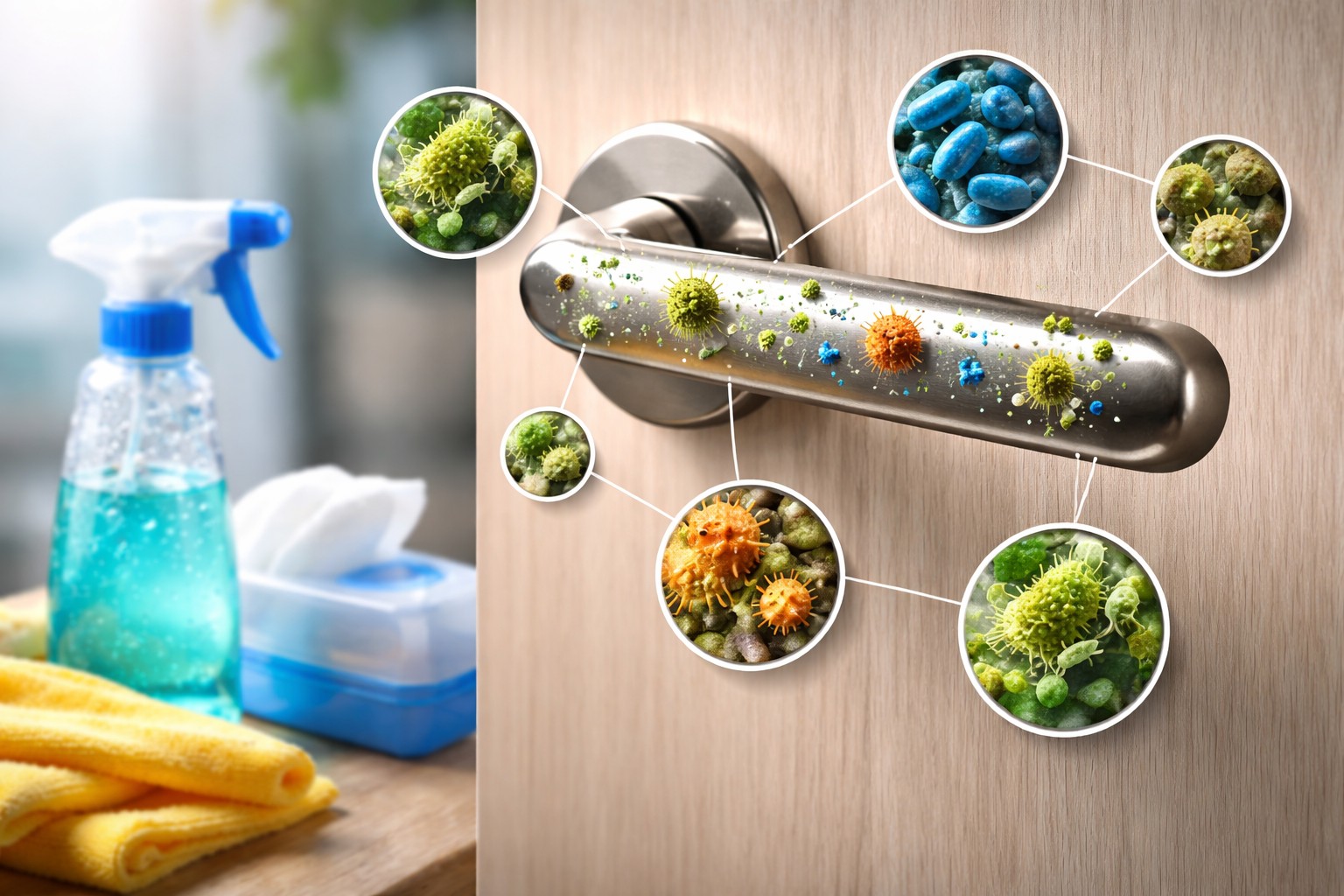 The door handle is the main route of transmission of infections inside the house. We touch them immediately after returning from the street, after visiting the toilet or cooking raw meat. Research shows that more bacteria can accumulate on one handle than under the rim of a toilet bowl.