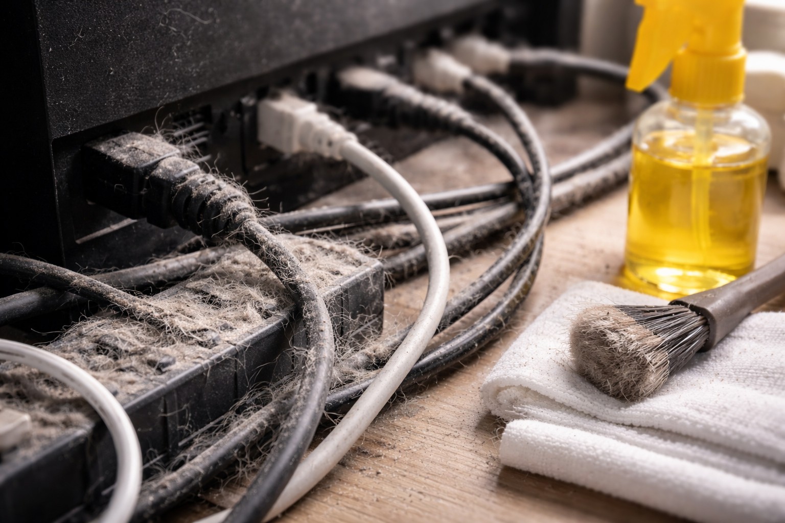 The plastic sheath of cables has the property of accumulating static electricity. That is why the wires act like a powerful magnet, attracting the smallest particles from the air, pet hair and dust mites.