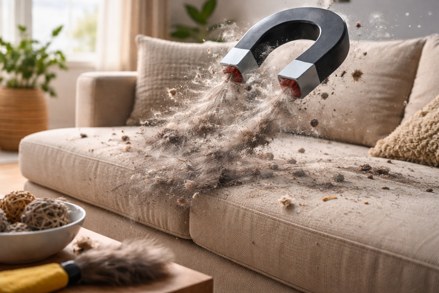 One of the main reasons is static electricity. Most modern upholstery fabrics contain synthetic fibers, which accumulate a charge when rubbed. As a result, the surface literally pulls out of thin air: