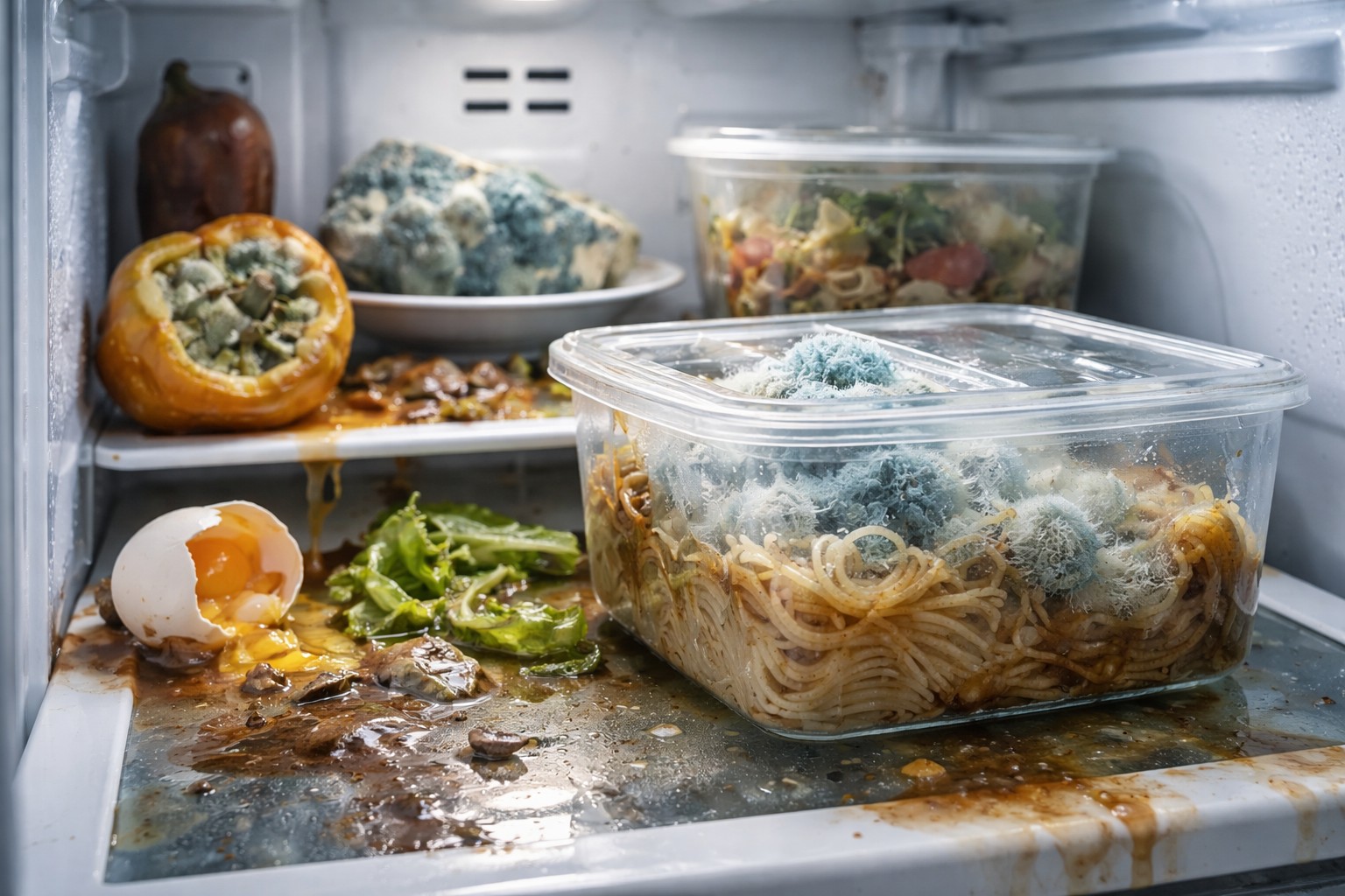 It should not be ruled out improper storage. Some dishes, such as smoked meats, fish or salad with onions, have such a strong aroma that it is absorbed into the plastic walls. Leaving food on open plates rather than in sealed containers will cause smells to mix and create a heavy atmosphere. Plastic has a porous structure and is able to retain foreign odors for a long time even after the source has been removed.