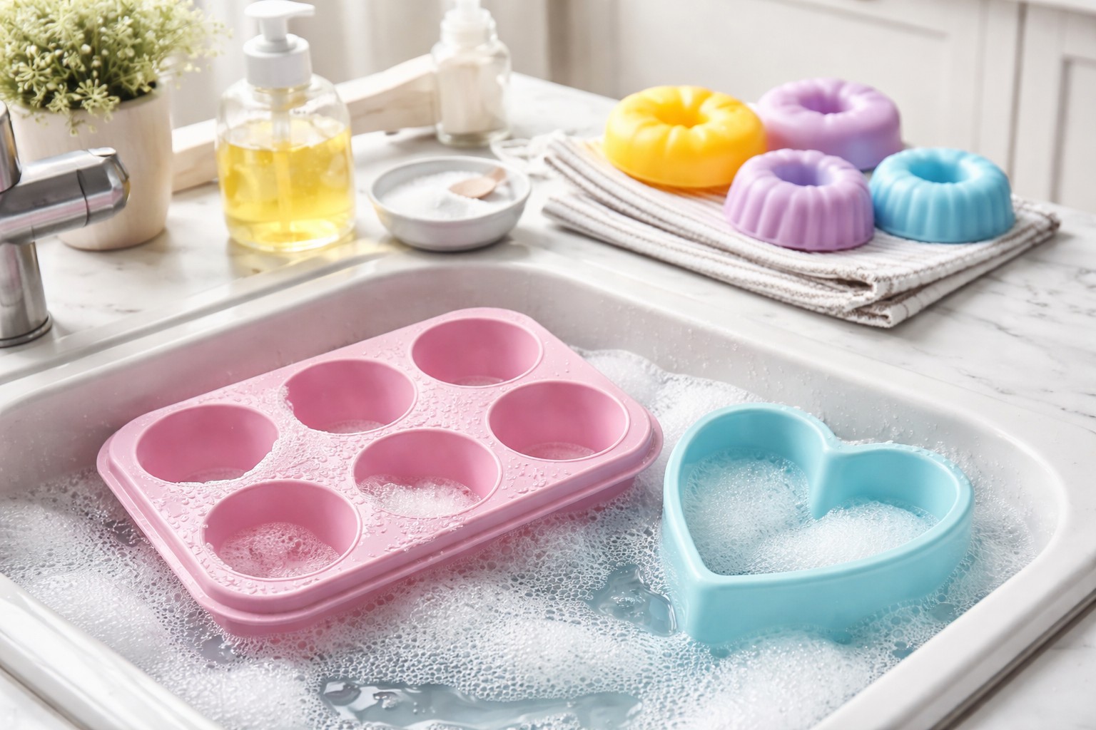 The structure of silicone is porous, therefore fat and oil penetrate deep into the material when heated. Regular dish soap only removes dirt from the surface, leaving behind a stubborn film. Over time, this layer polymerizes, turning into a persistent carbon deposit that makes the molds cloudy and unpleasant to the touch. To get rid of the problem, you need a product that can break down the fat inside the pores.