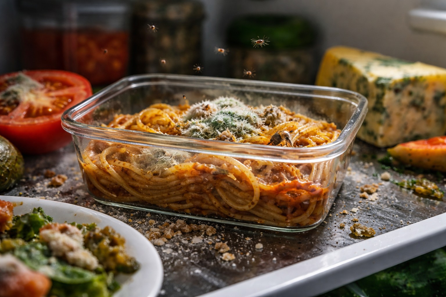 If prepared food is left open, it becomes an ideal target for pathogenic flora. It is especially dangerous if drops of juice from raw meat or fish stored on the shelf above accidentally fall into an open salad or yogurt. This phenomenon is called cross-contamination and is a common cause of food poisoning in the home.