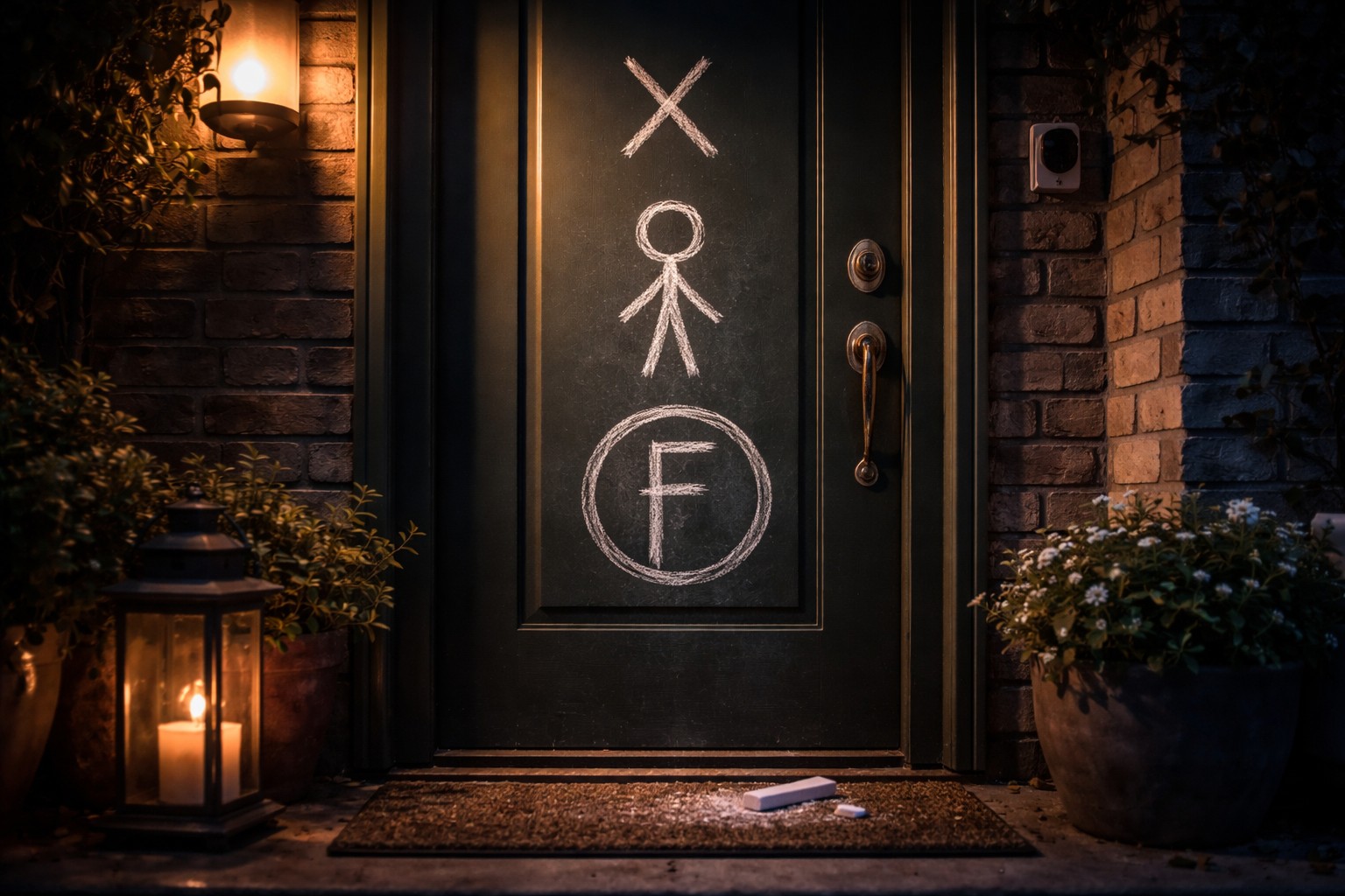 Criminal gangs rarely act at random. Before going on a theft, they conduct thorough reconnaissance. Tags on the doors serve as a way to exchange information between the gunner and the performer. Using simple symbols, they capture important data: