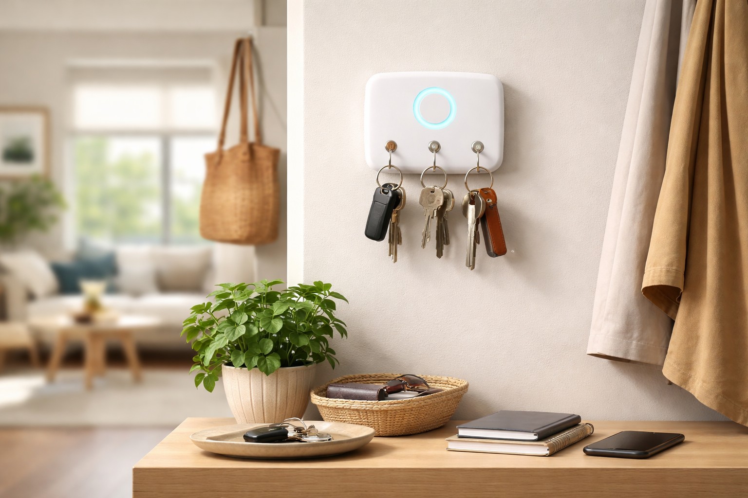 For the system to work, it is important to choose logical locations. Keys should be on the console at the entrance, chargers should be in a specific drawer, and receipts should be in a special folder. If an item is used in different rooms, one basic return point is still selected for it.