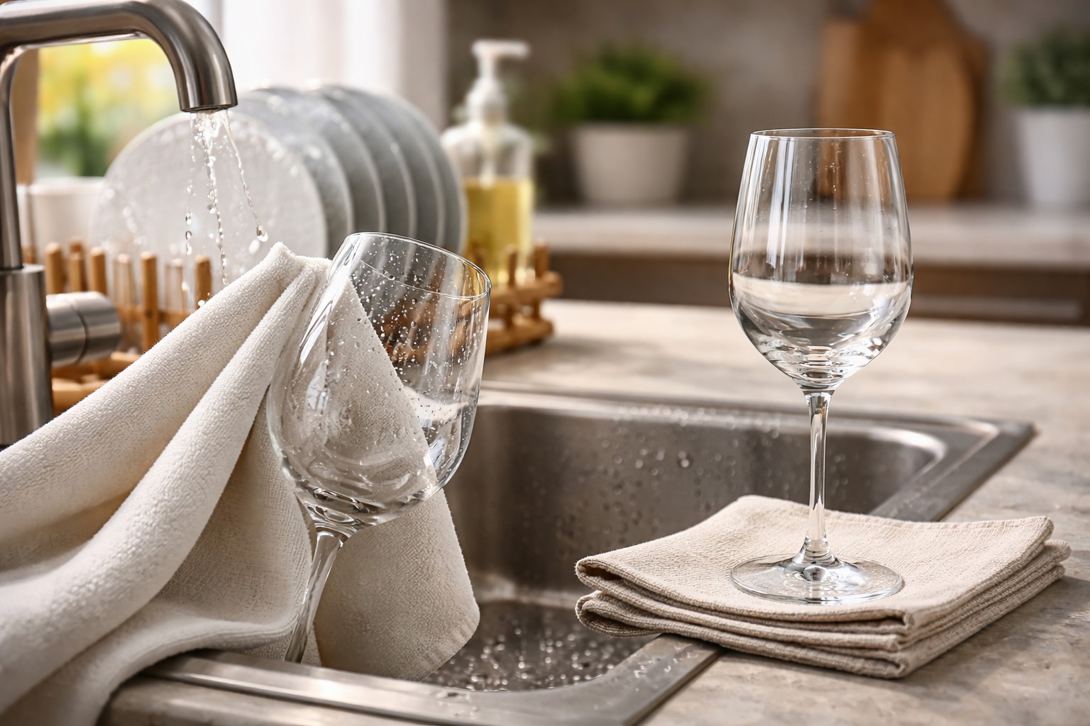 Cutlery and knives from high carbon steel. Even stainless steel can become stained with oxidation if exposed to drops of water for a long time. Wiping dishes with a soft towel immediately after washing guarantees the absence of stains and hygienic cleanliness, since stagnant water in cabinets often causes an unpleasant odor.