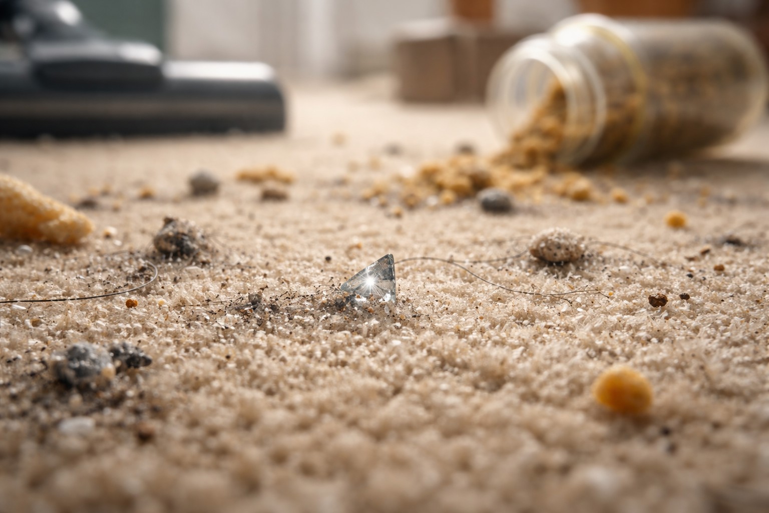 One of the main reasons why small pieces of plastic, foam or synthetic fibers are so difficult to collect is static charge. When you try to brush them off, the particles do not move into the dustpan, but “stick” to the pile or scatter in different directions.