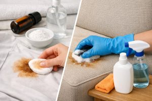 Accidentally spilled antiseptic is instantly absorbed into the fibers of the fabric, leaving noticeable dark brown marks....